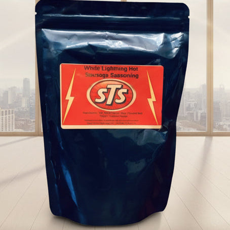 White Lightening Sausage Hot ignites your taste buds with daring, all-natural heat crafted from authentic country roots. This bold seasoning unleashes a fiery punch that perfectly balances spice and flavor, transforming ordinary sausage into a fearless flavor experience. For those who crave intense heat without compromise, White Lightening delivers the ultimate in powerful seasoning. Package contents season 25 lbs of sausage.